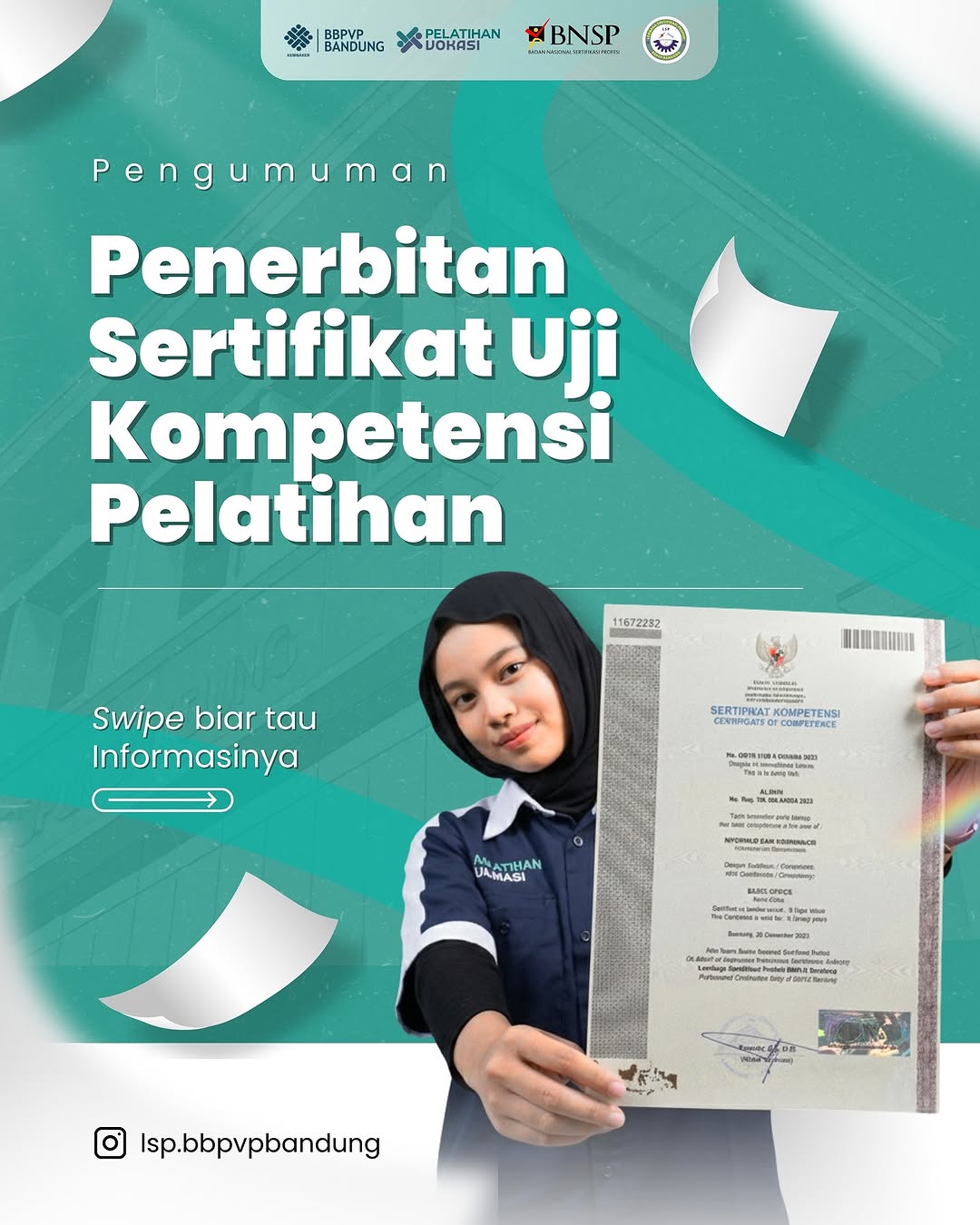 - Sertifikat kompetensi dari Badan Nasional Sertifikasi Profesi (BNSP)