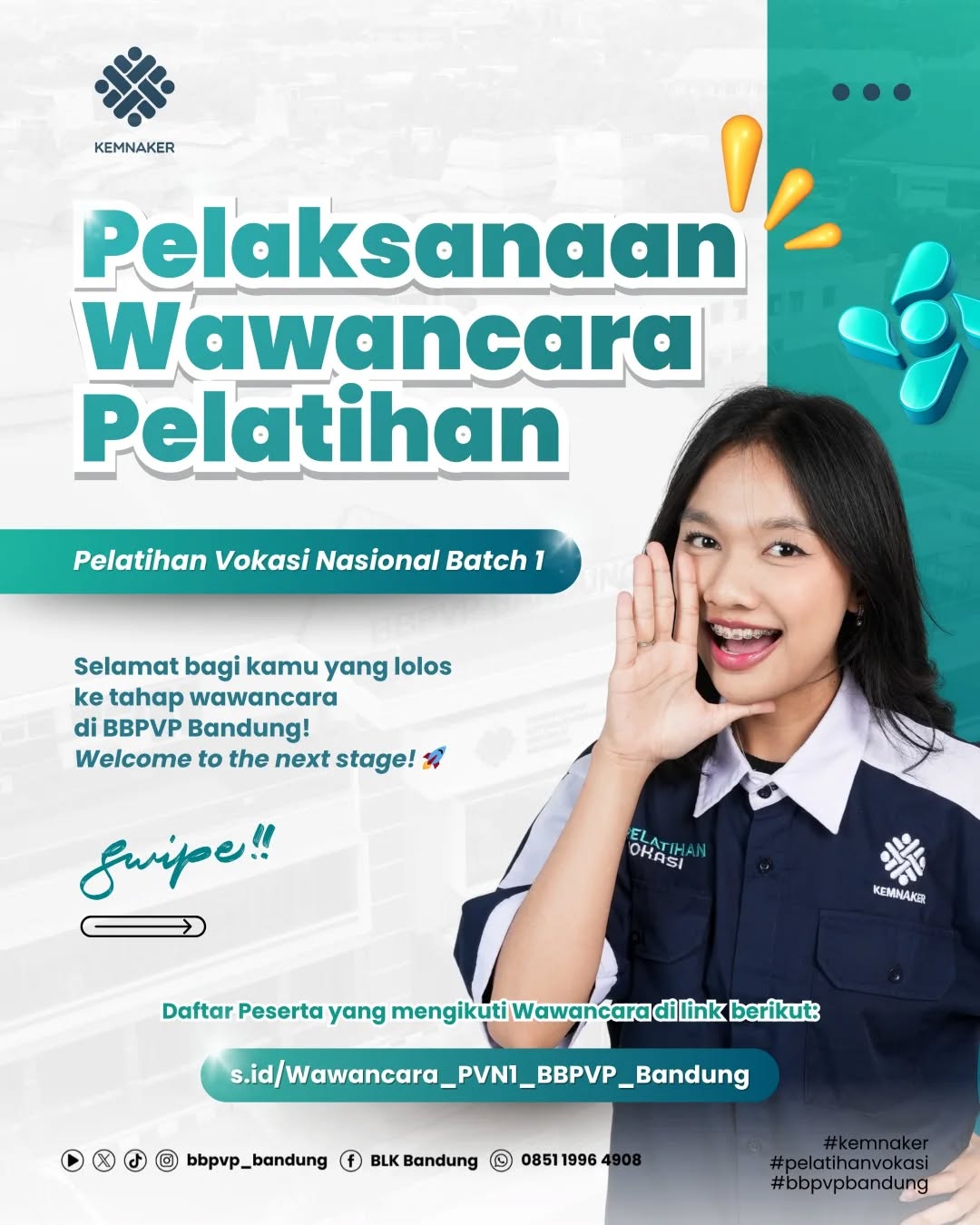 Silakan cek daftar nama peserta yang lolos pada tautan berikut: 👉 s.id/Wawancara_PVN1_BBPVP_Bandung